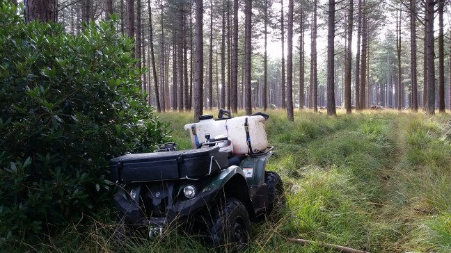 We have completed our chemical weeding contract for the Forestry commission for 2016. The recent addition of a Yamaha Grizzly 450 quadbike to our machinery inventory helped make light work of tackling the large stands of rhododendron we encountered at Rempstone.